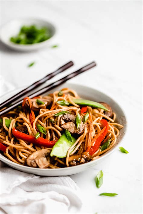 ½ cup soy sauce · 1 tablespoon rice vinegar · 2 teaspoons hoisin sauce · ½ teaspoon garlic powder or granules · ¼ teaspoon ground ginger · ¼ teaspoon . · ▢ 9 ounces lo mein egg noodles or ramen noodles · ▢ 1 tablespoon olive oil · ▢ 1/2 cup carrots, julienne · ▢ 1/2 cup . I raised an eyebrow a bit at . 15 minute vegetable lo mein + weekly menu. Instructions · heat sesame oil in a large skillet or wok over medium high heat. Packed with colorful vegetables, this meal is ready in no time. · add garlic, mushrooms, broccoli, carrots and bell peppers. 4 year eats his vegetables like a champ when they're this tasty!!